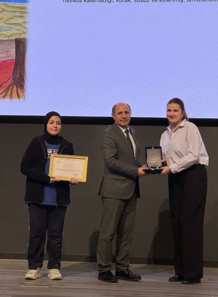 İSKİ tarafından düzenlenen ödül töreninde, öğrencimiz başarı belgesini ve ödülünü İSKİ Genel Müdür Yardımcısı Sayın Yakup Kaplan’ın elinden aldı.